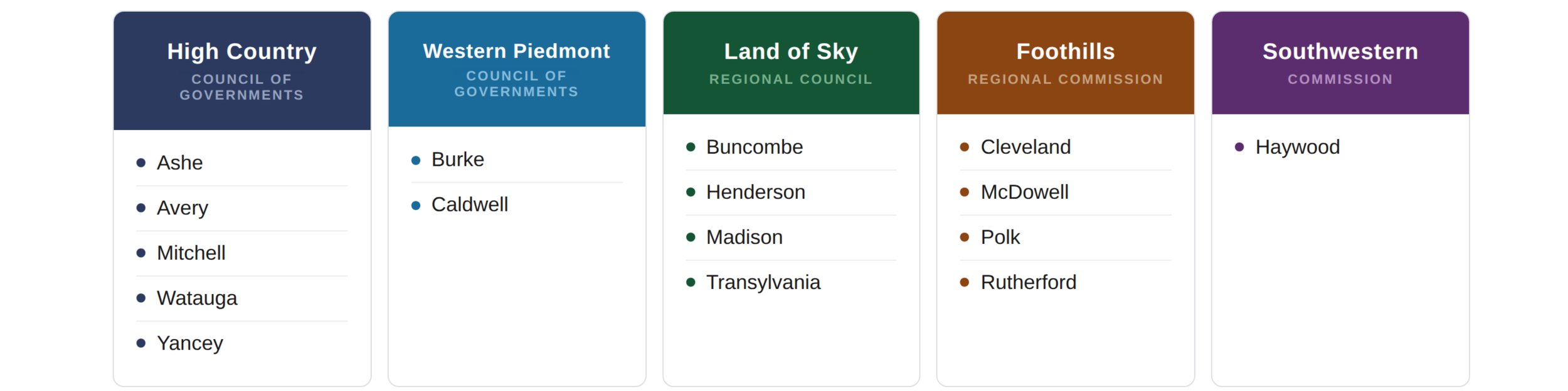 Counties considered “Foothills Regional” - Cleveland, McDowell, Polk, & Rutherford